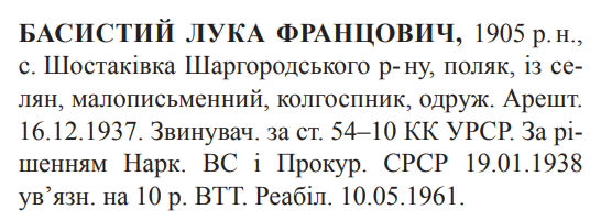 Реабілітований: Вінницьким облсудом 10.05.1961 Реабілітовані історією