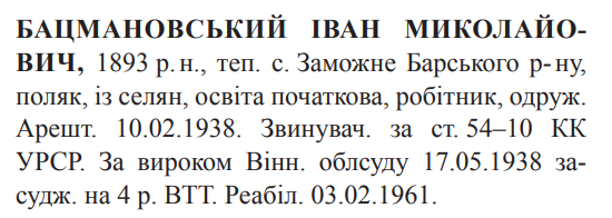 54-10 КК УССР. Вінницьким облсудом засуджений до 4 років ВТТ
