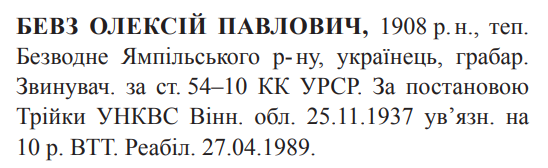 Реабілітований: Вінницькою облпрокуратурою 27.04.1989 Реабілітовані історією