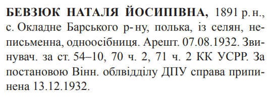 54-10, 70 ч.2 КК УССР. Вінницьким обласним відділом ДПУ справу припинено