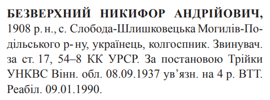 (Можливий варіант написання прізвища: Безверхній) Реабілітовані історією