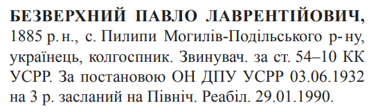 (Можливий варіант написання прізвища: Безверхий, Безверхній) Реабілітовані історією