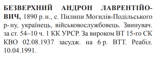 (Можливий варіант написання прізвища: Безверхий, Безверхній) Реабілітовані історією