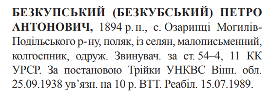 (Можливий варіант написання прізвища: Бескупський, Безкубський, Бескубський) Реабілітовані історією