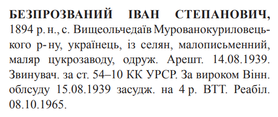 Реабілітований: Верховним судом УССР 08.10.1965 Реабілітовані історією