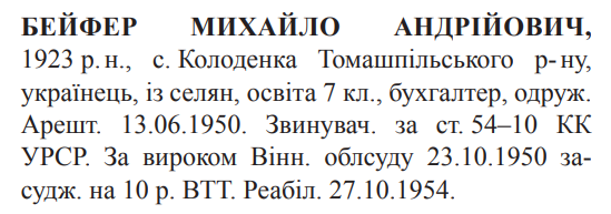 54-10 КК УССР. Вінницьким облсудом засуджений до 10 років ВТТ