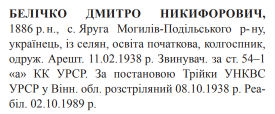 Дмитро Беличко розстріляний 08.10.1938