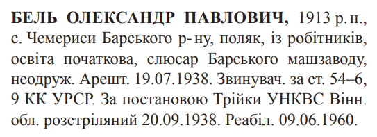 (Можливий варіант написання прізвища: Бєль) Реабілітовані історією