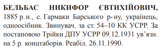 (Можливий варіант написання прізвища: Більбас) Реабілітовані історією