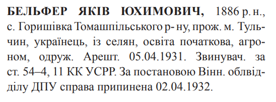 54-4, 54-11 КК УССР. Вінницьким обласним відділом ДПУ справу припинено
