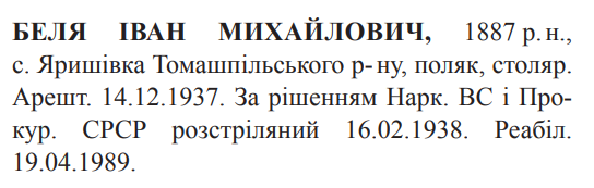 (Можливий варіант написання прізвища: Бєль, Бєль) Реабілітовані історією