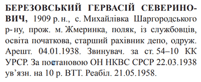 Реабілітований: Вінницьким облсудом 21.05.1958 Реабілітовані історією