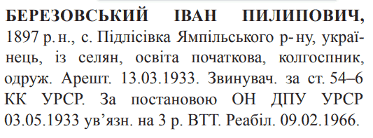Реабілітований: Вінницьким облсудом 09.02.1966 Реабілітовані історією