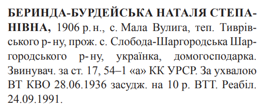 (Можливі варіанти написання прізвища: Беренда, Бурдейська) Реабілітовані історією