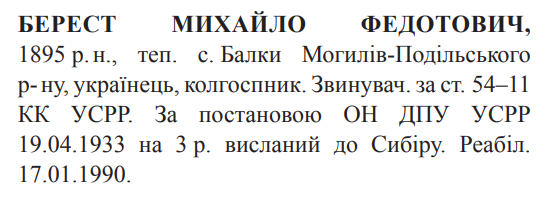 Реабілітований: Вінницькою облпрокуратурою 17.01.1990 Реабілітовані історією