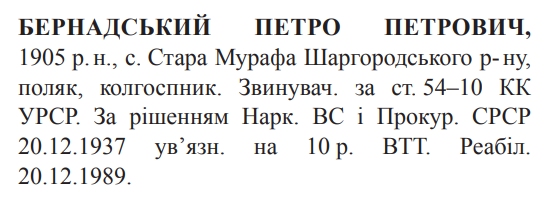 Реабілітований: Вінницькою облпрокуратурою 10.12.1989 Реабілітовані історією