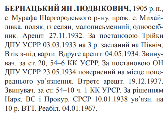 Реабілітований: Вінницьким облсудом 04.01.1967 Реабілітовані історією