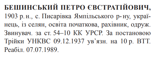Реабілітований: Вінницькою облпрокуратурою 07.07.1989 Реабілітовані історією