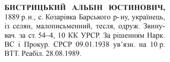 Реабілітований: Вінницькою облпрокуратурою 28.08.1989 Реабілітовані історією