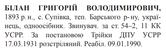 Реабілітований: Вінницькою облпрокуратурою 09.01.1990 Реабілітовані історією