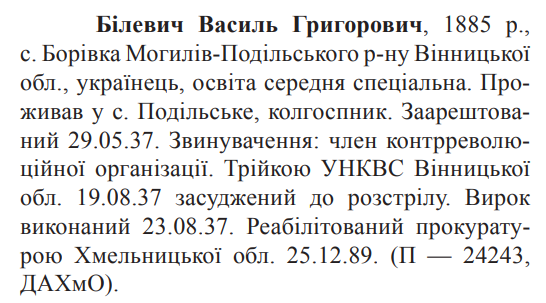 Реабілітований: Прокуратурою Хмельницької обл. 25.12.1989 Реабілітовані історією