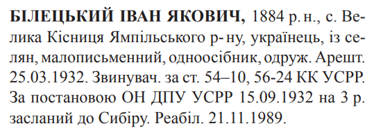 Реабілітований: Вінницьким облпрокурором 21.11.1989 Реабілітовані історією