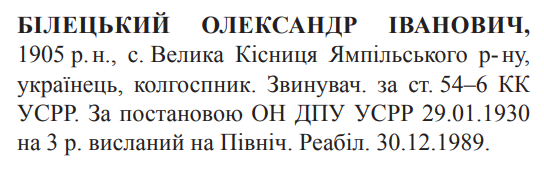 Реабілітований: Військовою прокуратурою Прикарпатського ВО 30.12.1989 Реабілітовані історією