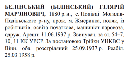 (Можливий варіант написання прізвища: Белінський) Реабілітовані історією