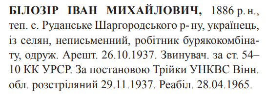 (Можливий варіант написання прізвища: Білозор) Реабілітовані історією