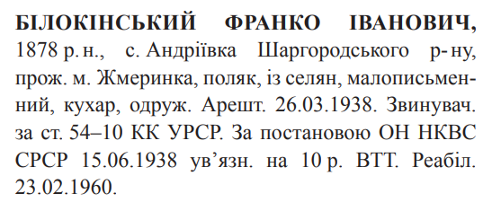 Реабілітований: Вінницьким облсудом 23.02.1960 Реабілітовані історією