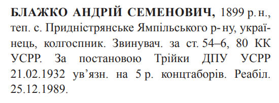 Реабілітований: Вінницькою облпрокуратурою 25.12.1989 Реабілітовані історією