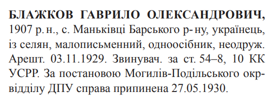 54-8, 54-10 КК УССР. Могилів-Подільським окружним відділом ДПУ справу припинено