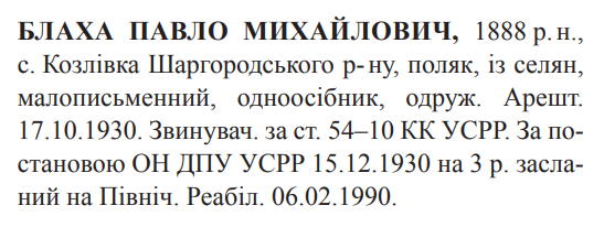(Можливий варіант написання прізвища: Блах) Реабілітовані історією