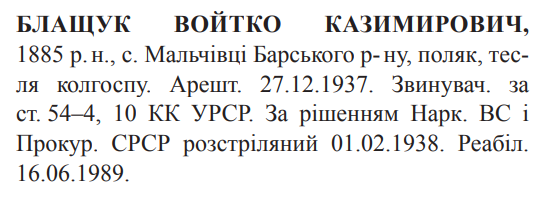 Реабілітований: Вінницькою облпрокуратурою 16.06.1989 Реабілітовані історією