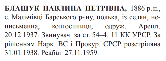 Реабілітована: Верховним судом УССР 27.11.1959 Реабілітовані історією