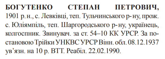 54-10 КК УССР. Трійкою УНКВС Вінницької обл. засуджений до 10 років ВТТ