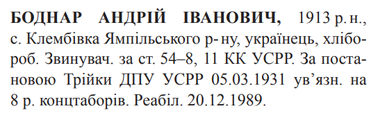 Реабілітований: Вінницькою облпрокуратурою 20.12.1989 Реабілітовані історією