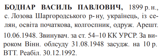 54-10 КК УССР. Вінницьким облсудом засуджений до 10 років ВТТ