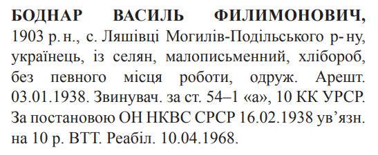 Реабілітований: Президією Вінницького облсуду 10.04.1968 Реабілітовані історією