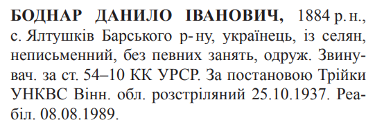 Реабілітований: Вінницькою облпрокуратурою 08.08.1989 Реабілітовані історією