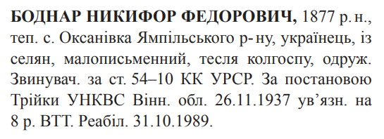 Реабілітований: Вінницьким облпрокурором 31.10.1989 Реабілітовані історією