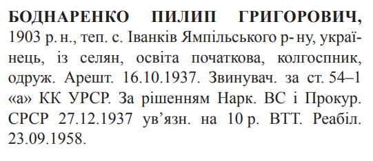 54-1 "а" КК УССР. Наркомом ВС і Прокурором СССР засуджений до 10 років ВТТ