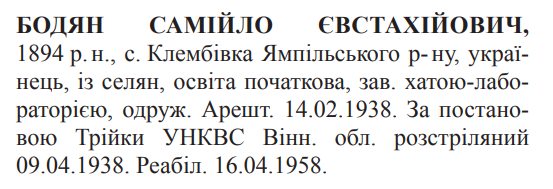 Реабілітований: Вінницьким облсудом 16.04.1958 Реабілітовані історією