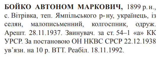 Реабілітований: Вінницькою облпрокуратурою 18.11.1992 Реабілітовані історією