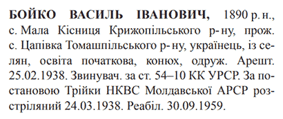 Реабілітований: Вінницьким облсудом 30.09.1959 Реабілітовані історією