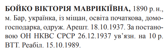 Реабілітована: Житомирською облпрокуратурою 15.10.1989 Реабілітовані історією