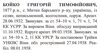 Реабілітований: Вінницьким облсудом 08.01.1958 Реабілітовані історією