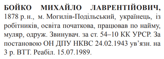 Реабілітований: Вінницьким облпрокурором 15.07.1989 Реабілітовані історією