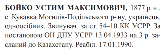 Реабілітований: Вінницькою облпрокуратурою 17.01.1990 Реабілітовані історією