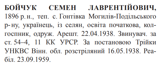 Реабілітований: Вінницьким облсудом 23.09.1959 Реабілітовані історією